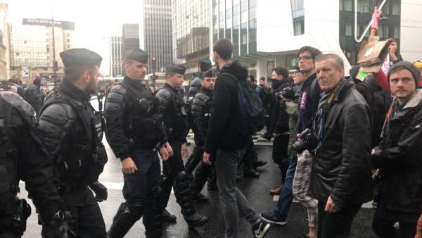 Yoğun yağmura rağmen kitle Austerlitz köprüsüne doğru yürüyüşe geçti. Austerlitz köprüsü yakınlarında, güvenlik güçleri ve eylemciler arasında yaşanan arbedede, polis yoğun gaz bombası kullandı.