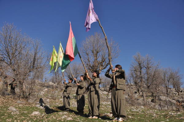 Askeri tören, ‘Bijî Serok Apo", "Bê Serok Jiyan Nabe", "Jin Jiyan Azadî’ sloganlarıyla sona erdi.