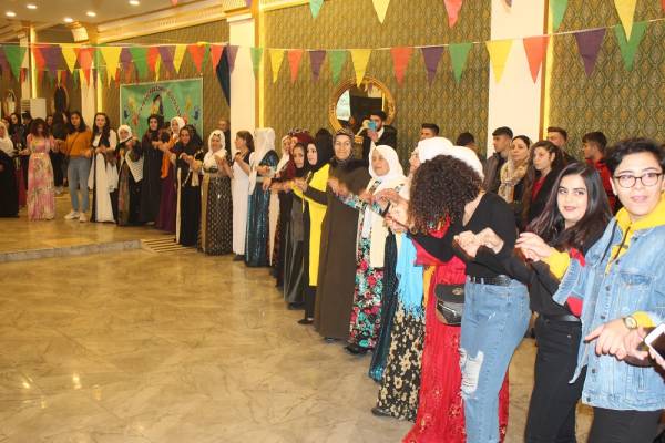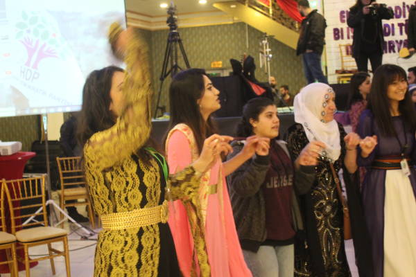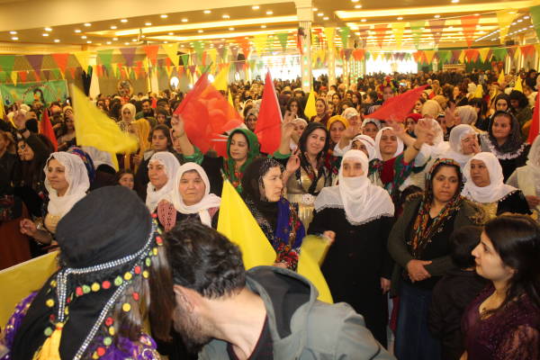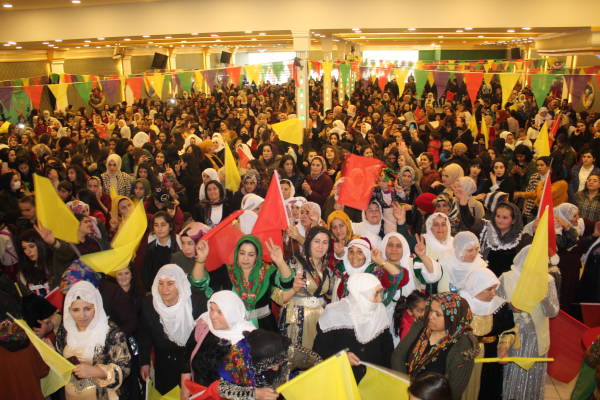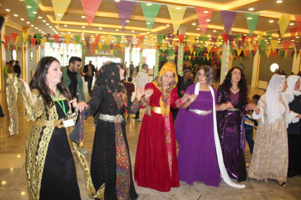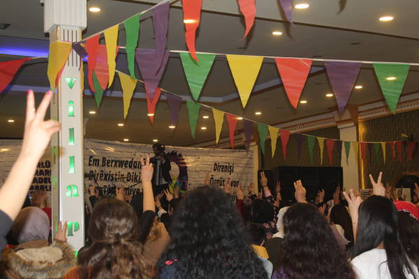8 Mart Dünya Emekçi Kadınlar Günü bu yıl Van’da çeşitli etkinlikle kutlandı. “Direnişi örgütlüyor, özgürlüğe yürüyoruz” şiarıyla kent merkezindeki Kültür Sokağı’nda bulunan bir düğün salonunda gerçekleşen şölene, HDP Kadın Meclisi Sözcüsü Ayşe Acar Başaran, Van Milletvekili Muazzez Orhan, TJA aktivisti Gülcihan Şimşek, Demokratik Toplum Kongresi (DTK) üyelerinin yanı sıra binlerce kadın katıldı. Şölene yöresel kıyafetlerin yanı sıra beyaz ve mor renkli elbiselerle katılan kadınlar, alkış ve zılgıtlar eşliğinde söyledikleri ezgilerle halay çekti. Kadınların sık sık “Jin, jiyan, azadî” sloganları attığı şölen düzenlenen saygı duruşu ve kadın mücadelesini anlatan sinevizyon gösterimi ile başladı.