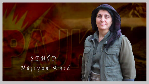 "YJA Star komutanlarından ve öncü PAJK militanı Nûjiyan Amed yoldaşımız, 23 Temmuz 2023 günü işgalci Türk devletinin Medya Savunma Alanları’na yönelik gerçekleştirdiği saldırıda şehadete ulaştı. Başta Nûjiyan yoldaşımızın değerli ailesi olmak üzere tüm yurtsever Kürt halkına ve şehit ailelerine başsağlığı diliyor, Nûjiyan yoldaşımızın amaç ve hayallerinin takipçisi ve pratikleştiricisi olacağımızın sözünü veriyoruz.