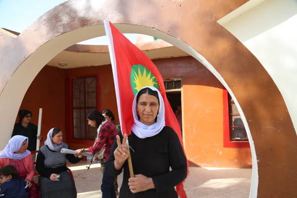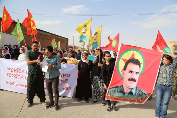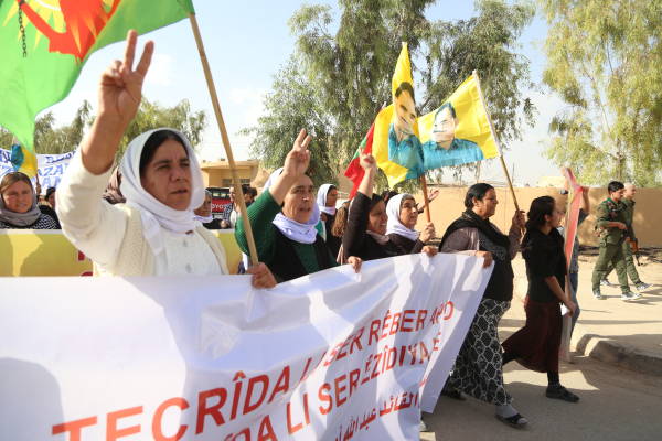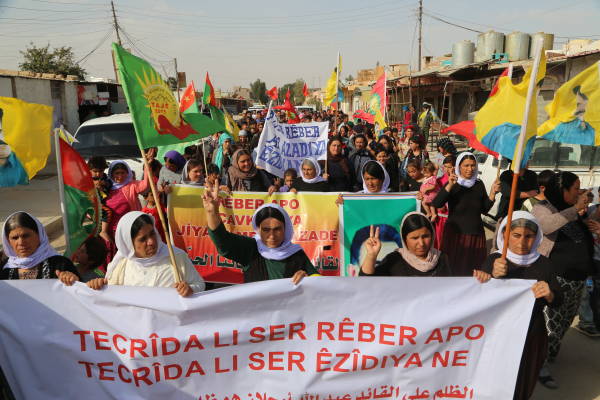 Kültür ve Sanat Kurumu binası önünde bir araya gelen yüzlerce Êzidî, PKK, YBŞ, YJŞ, Şengal Demokratik Özerk Meclisi, Tevgera Azadiya Jinên Êzîdxan (TAJÊ), Partiya Azadiya Demokratik ya Êzidîyan (PADÊ) flamaları ile Abdullah Öcalan’ın posterlerini taşıdı. Kürtçe ve Arapça olarak “Başkan Apo’nun üzerindeki tecrit, Êzidxan’ın üzerindeki tecrittir” pankartlarını açan kitle “Başkan Apo Özgür yaşamımızın kaynağıdır” pankartları ile “Bijî Serok Apo”, Bijî Berxedana İmraliyê” ile “Bê Serok Jiyan Nabe” sloganlarını attı.