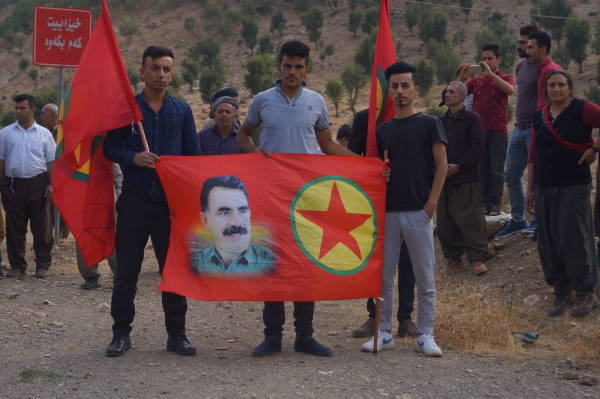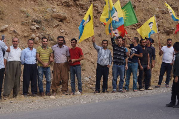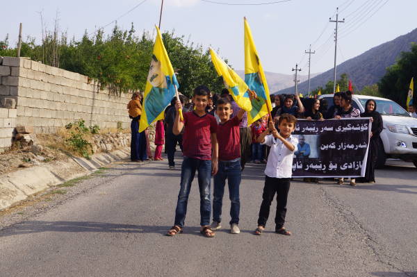 Çok sayıda kişinin toplandığı yürüyüşte kadınların ve çocukların yoğunluğu dikkat çekerken, Öcalan’ın posterleri ve komployu kınayan pankartlar öncülüğünde yürüyüşe başlandı.
