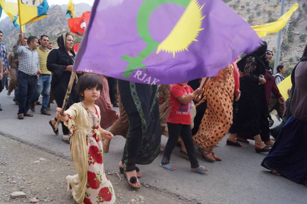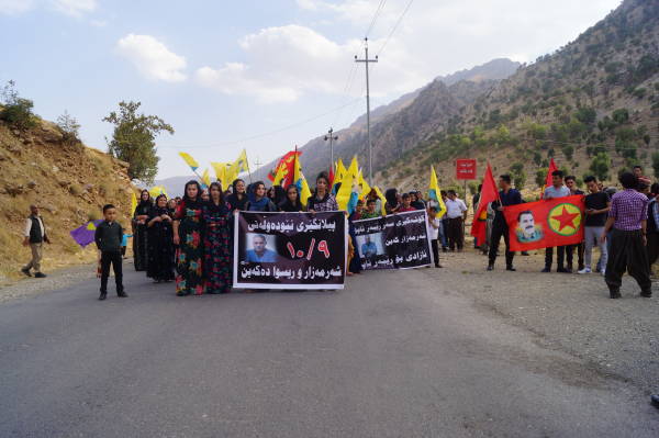 inarê Qendil belediyesi önünde başlayan yürüyüş 2015’te Türk savaş uçakları tarafından bombalanan ve bu bombardımanda 9 sivilin yaşamını yitirdiği Zergele köyünde basın açıklaması ile devam etti.