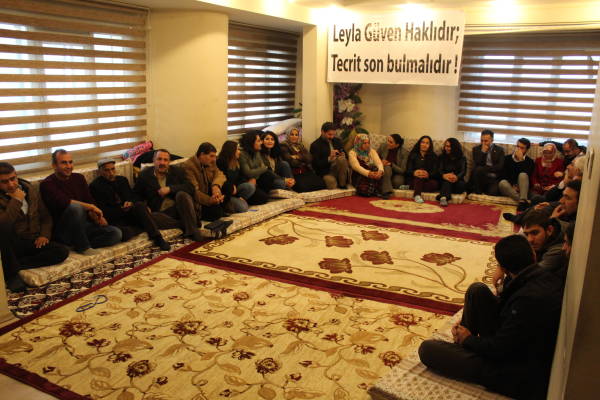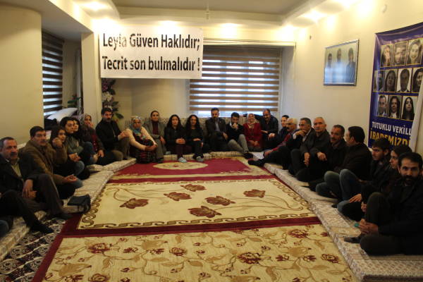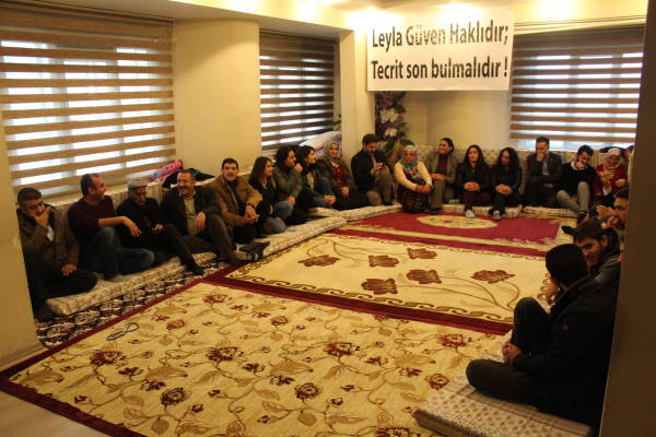 Açıklamanın yapıldığı HDP il binasındaki Vedat Aydın Konferans Salonu'na, "Tecridi kıralım, faşizmi püskürtelim", "Leyla Güven haklıdır, tecrit son bulmalıdır" yazılı pankartlar asıldı ve eylemciler Leyla Güven'in fotoğrafının bulunduğu önlükler giydi.