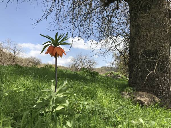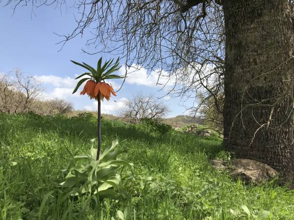 Fakat sonra bakınca önümde bir Ters Lale olduğunu görüyorum. Koskocaman bir kezvan ağacının karşısında dikilmiş tek bir ters Lale sanki o koca ağaca meydan okuyor. Aynı zamanda kışın bütün soğuğuna karşı verdiği mücadele de kazandığı zaferin asaleti içinde.