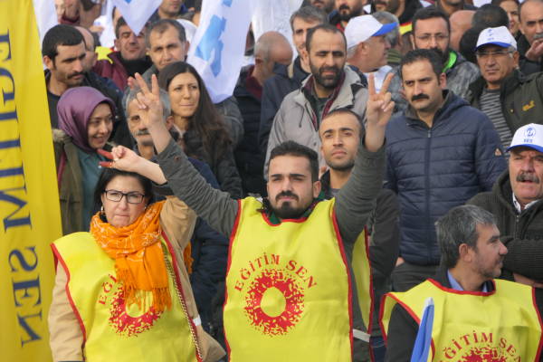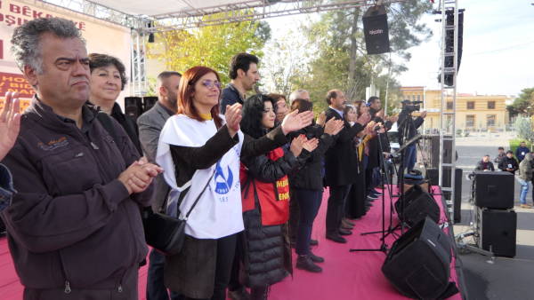 KESK Eş Genel Başkanı Mehmet Bozgeyik, emekçileri “Berxwedan jiyan e” sloganıyla selamladı. Bozgeyik konuşmasında şunları söyledi: