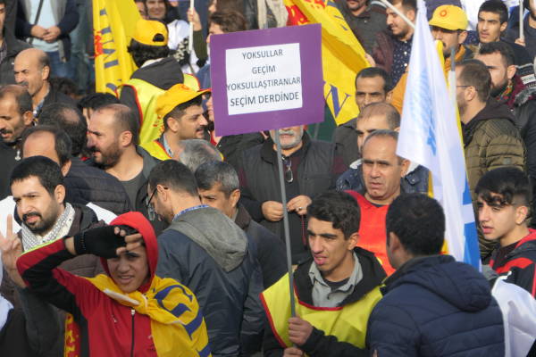 Kamu Emekçileri Sendikası Konfederasyonu (KESK) Amed Şubeler Platformu’nun, "Krizin Faturasını Emekçiler Değil, Krizi Yaratanlar Ödesin" şiarıyla İstasyon Meydanı'nda düzenlediği bölge mitingine binlerce emekçi katıldı. Emekçiler sık sık “Faşizme karşı omuz omuza” ve “AKP halka hesap verecek” sloganları atarak ekonomik krize tepki gösterdi.