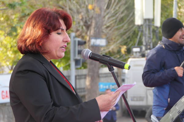 Bir an önce demokrasi için adım atılmalıdır. Hiç bir annenin gözyaşı dökmesini istemiyoruz. Derhal barış sağlanmalıdır. Yıllardır savaşa değil emekçiye, halka bütçe diyoruz. Bu talebimizi haykırmaya devam edeceğiz."
