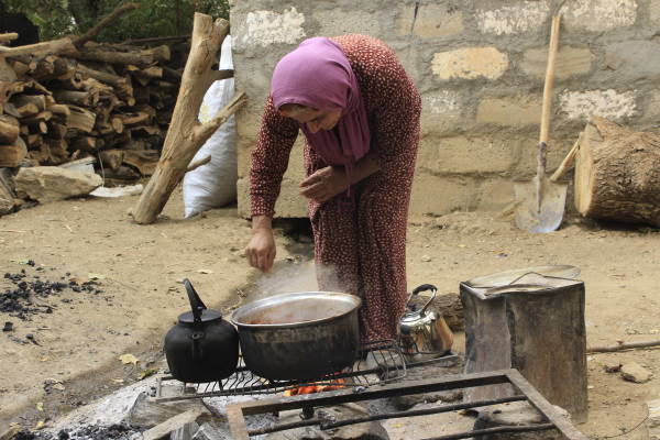 Hazırladığı nar suyunu bir tencereye boşaltan Amine, ateşin başında nar ekşisini ağır ağır karıştırıken şunları söyledi: “Yaptığım işler zor olabilir ama her canlı gibi yaşamımı sürdürmek ve aileme bakabilmek için kışa hazırlık yapmalıyım. Bu yüzden altı çocuğum için en iyisini yapmak istiyorum.