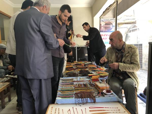 Tespih ama özellikle de kehribar tutkunları Mêrdîn, Sêrt, Şirnex, Bedlîs, Wan, Agirî, Meletî, Riha ve Dîlok’tan gelip Amed’in tespih pazarından buluşuyor.