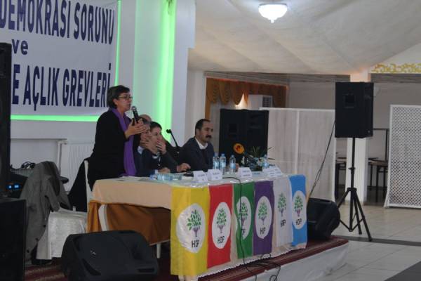 “Türkiye’nin demokrasi sorunu ve dünden bugüne açlık grevleri” adlı panele HDP Van İl eşaşkanları Yadişen Karabulak, Ümit Dede, DBP Van İl eşbaşkanları Ayla Tarhan, Ökkeş Kawa, Muş Milletvekili Mensur Işık, Özgür Kadın Hareketi (TJA) Üyesi Ayşe Gökkan, Türk Tabipler Birliği (TTB) Üyesi Dr. Zeki Gül, Asrın Hukuk Bürosu avukatlarından Faik Özgür Erol, HDP Van milletvekilleri Muazzez Orhan, Murat Sarısaç, TJA aktivistleri, DTK temsilcileri, STK temsilcileri, Barış Anneleri ve halk katıldı.
