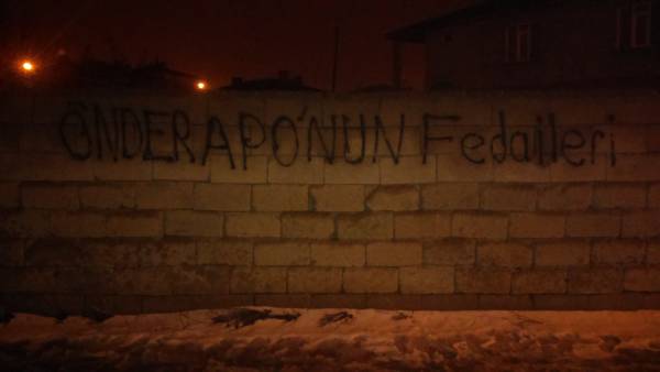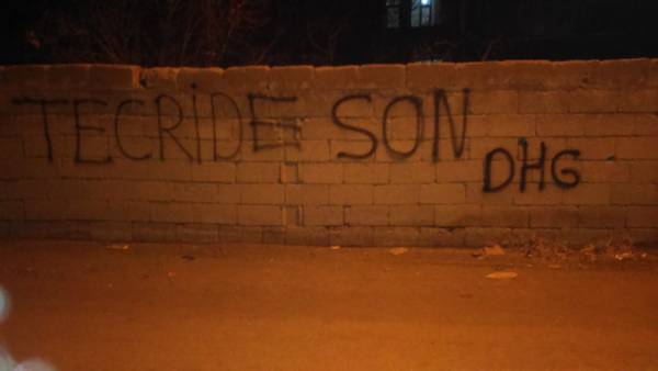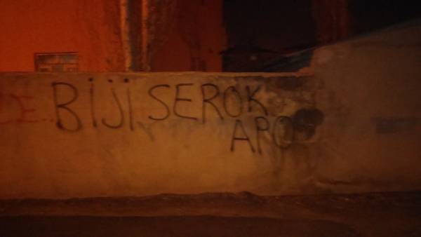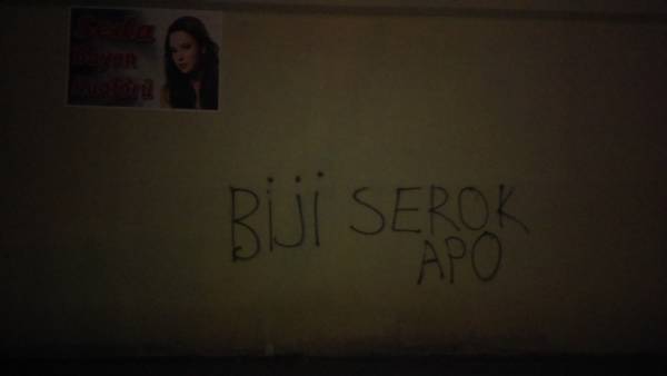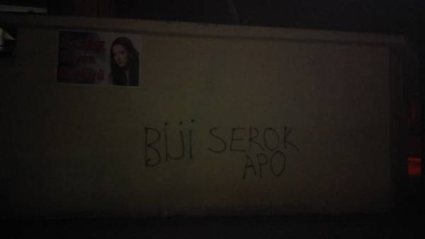 Kürt Halk Önderi Abdullah Öcalan’a yönelik uygulanan ağırlaştırılmış tecridi protesto etmek, Öcalan’ın sağlık, güvenlik ve özgürlüğü talebi ile açlık grevi direnişinde olan DTK Eş Başkanı ve HDP Hakkari Milletvekili Leyla Güven ile dayanışmak amacıyla gençler, Van’ın Tuşba ilçesinde yazılama yaptı.