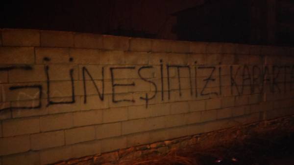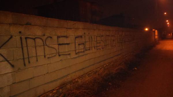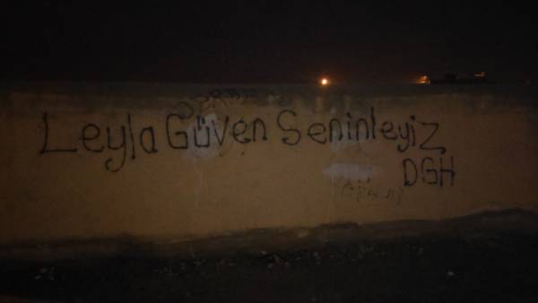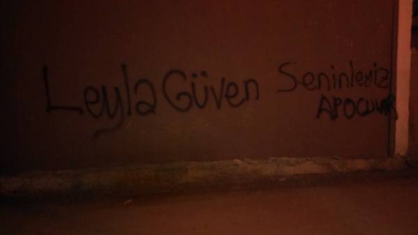 Van’ın Tuşba ilçesinde gençler, 98 gündür açlık grevi direnişinde olan Leyla Güven için yazılama yaptı.