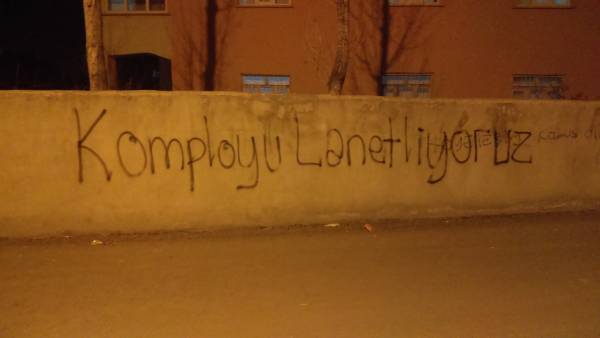 Yazılamalarda uluslararası komplo da protesto edildi.