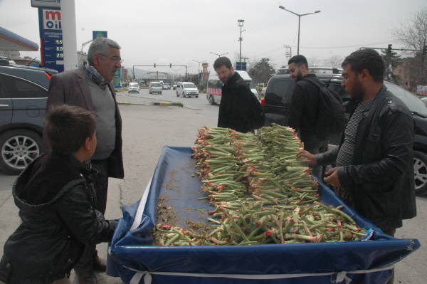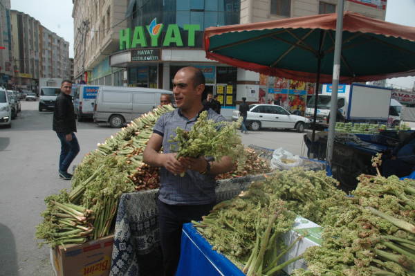 Baharın ilk aylarında dağların ulaşılması zor yerlerinde yetişen rebes, (Kürt Muzu) tezgahlardaki yerini almaya başladı.