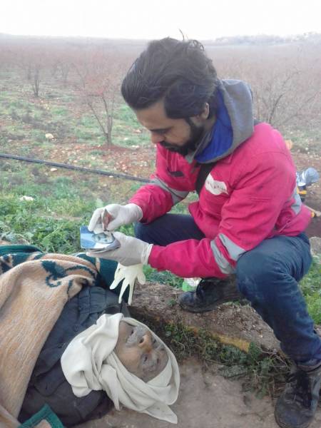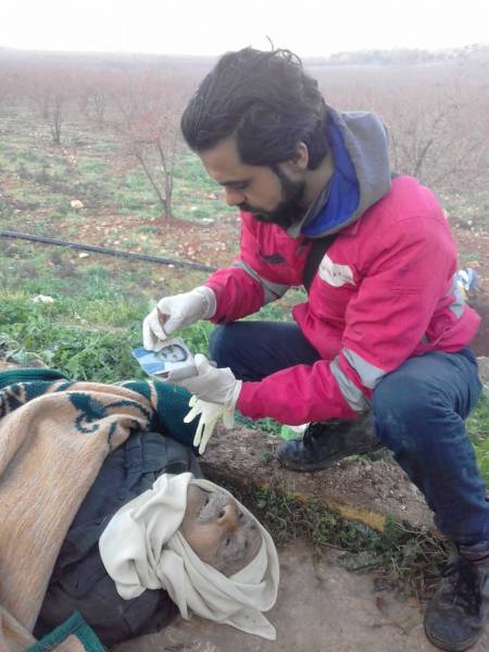 ‘Üç gün önce obüs saldırılarından dolayı çok sayıda kişi yerinden göç etmek zorunda kaldı. Bulduğumuz bir cenazeyi keşif uçaklarından dolayı mezarlığa götüremedik. Yol kenarında, Nar bahçesinde mezar kazıp toprağa verdik. Biz ulaştığımızda cenaze bir gün yolda bekliyordu.’