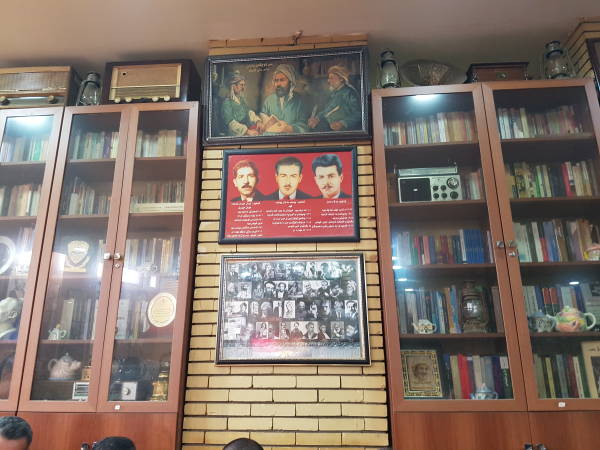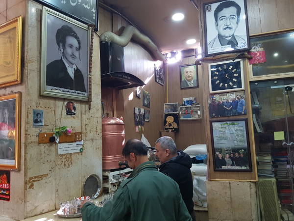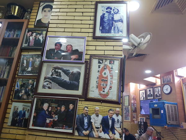 Çayxana Şeb’in duvarlarında yer alan fotoğraflar bir düzene göre asılmış. Sanatçılar için bir bölüm, Kürt liderleri için ayrı bir bölüm. Edebiyatçılar, müzisyenler, gerilla ve pêşmergeler için ayrı bölümler.