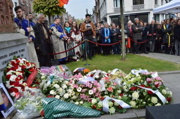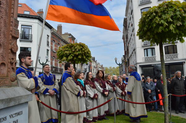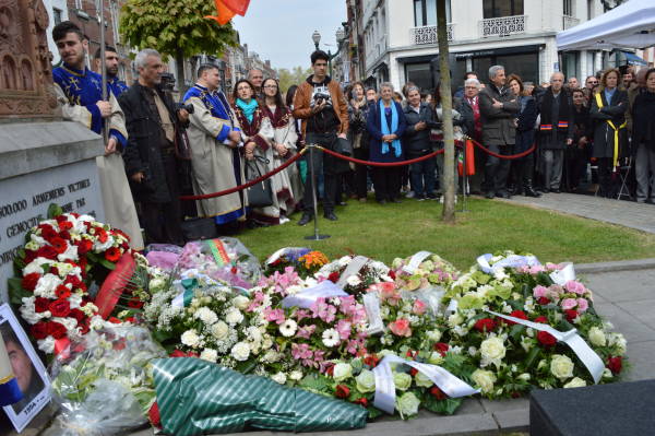 Ermeni soykırımında yaşamını yitirenler Belçika’nın başkenti Brüksel’deki Soykırım Anıtı önünde anıldı.